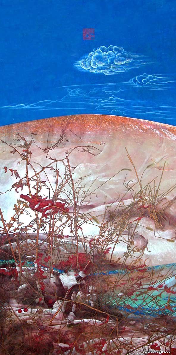 2010年重彩作品《蓝天—故土》入选2010全国中国画展并收藏。(江苏美术馆)