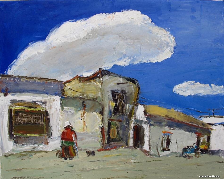 2014年,油画《西藏写生-古村》第十二届全国美术作品展览,